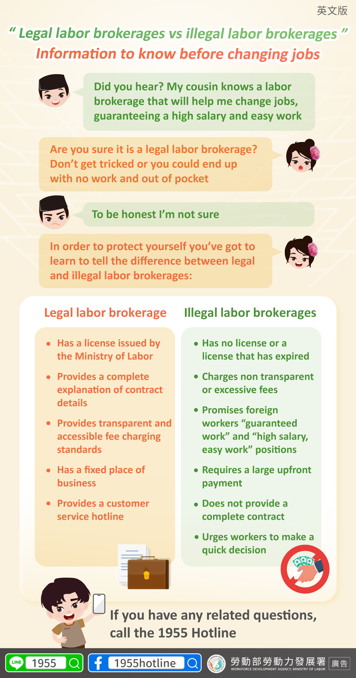 B:想保護自己,就要學會分辨「合法仲介」和「非法仲介」的差別: